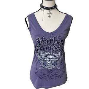 Y2K HARLEY DAVIDSON PURPLE GRAPHIC LOGO TANK TOP SMALL