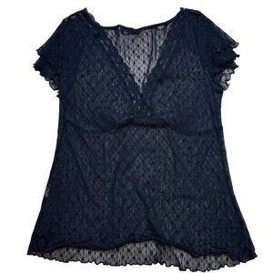 Y2K H&M Black Sheer Goth Lace V Neck Top With Ruffle Sleeves