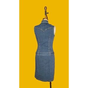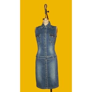 Y2K HOT KISS Denim Belted Snap Button Medium Wash Dress W/Breast Pockets. M-L
