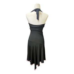 Y2K Halter Asymmetrical Black Midi Dress Pink Ribbon Trim Taboo