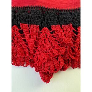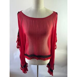 Y2K Handmade Angel Sleeve Ruby Red Black Silk Georgette Crochet Top Size Large