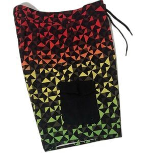 Y2K Hang Ten Board Shorts Size 38 Vintage Rasta Geometric Pattern Surf S…