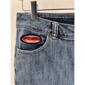 Y2K Harley Davidson Motorcycles Blue Denim Jeans Bootcut Low Rise Womens 2 Long