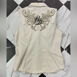 Y2K Harley Davidson White Embroidered Zip Up Vest Size Large