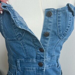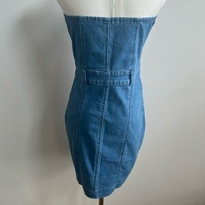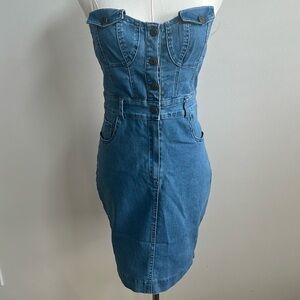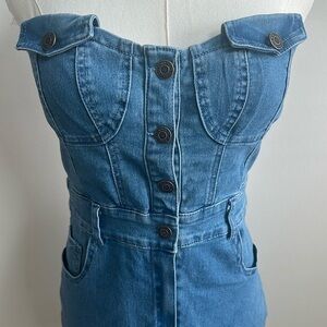 Y2K Haute Monde Women’s Strapless Blue Denim Mini Form Fitting Button Up Dress L