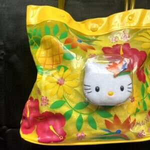 Y2K Hello Kitty Yellow Floral Iridescent Plastic Purse
