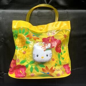This super cute, rare Y2K Hello Kitty purse is sure to bring a smile to your face! Featuring a vibrant yellow floral design and iridescent yellow plastic, this Hello Kitty is a must-have for any collector.