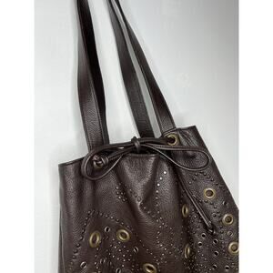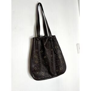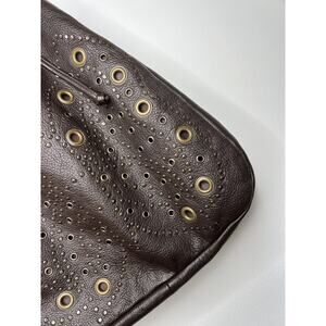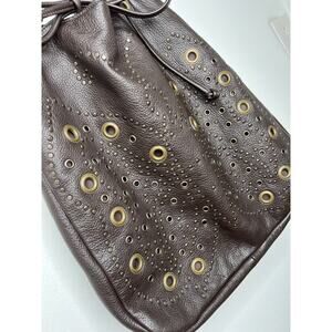 Y2K Hilton Weiner Leather Perforated Purse Studded Brown Bucket Bag Grommets