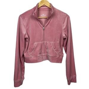 Y2K Hollister Pink Velour Zip Up Crop Tracksuit Jacket Medium