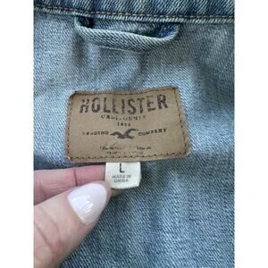 Y2K Hollister Denim Jacket Women's Size Large Jean Jacket Light Wash Distressed