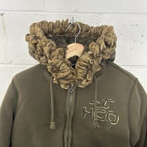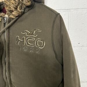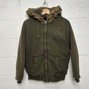 Y2K Hollister Faux Fur Plaid-Lined Full-Zip Jacket “Olive”