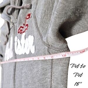 Y2K Hollister Gray Zip Hoodie Wnns M Waffle Knit Hood 2-way Zip Spellout Preppy
