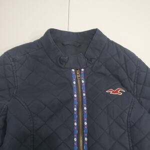 Y2K Hollister Jacket Womens Large Blue Quilted Cotton Zip Front Mock Neck