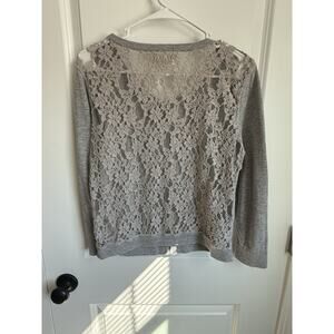 Y2K Hollister Lace Back Cardigan, Gray Button Up Sweater