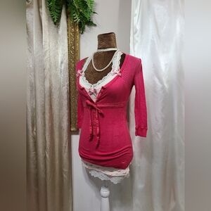 ⋆˚♡。▪︎ fun & flirty medium pink color!♡ truly gorgeous layered with a lace cami & patterned tank top underneath!♡ giving off 2000s era emo it girl scene teen vibes!♡ reminiscent of 00s elena gilbert tvd / bella swan twilight !♡ ▪︎。♡˚⋆