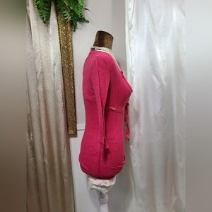 ♡ Y2K ♡ Hollister Pink Ribbed Waist Tie Button Down Babydoll Henley