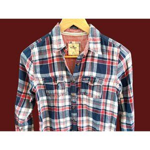 Y2K Hollister Women's Plaid Long Sleeve Button Up Shirt Size XS Preppy