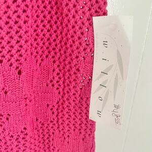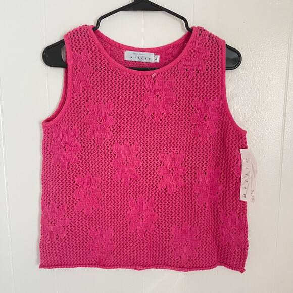 Y2K Hot Pink Crochet Tank Top M Floral Knit Cotton NWT Coquette Fairy USA Made