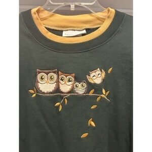 Y2K Hunter Green Embroidered Owl Grandma Layered Collar Sweatshirt Size 3X Top