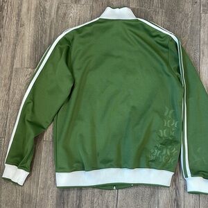 Y2K Hurley Sporty Green Jacket with White Stripe Accents