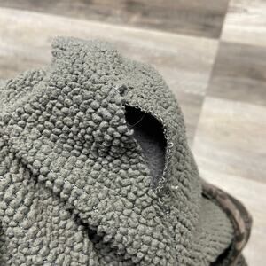 in fair pre owned condition- Cuffs fraying and stains, distress and stains on front sleeves and waistline, tear along inner seam.