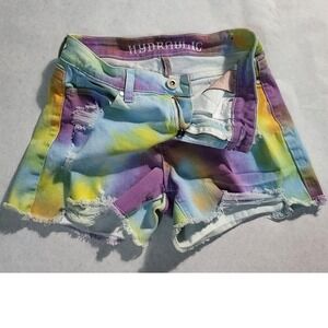 Y2K Hydraulic Tie Dye Denim Shorts Distressed Ripped Frayed Hem Colorful Size 4