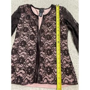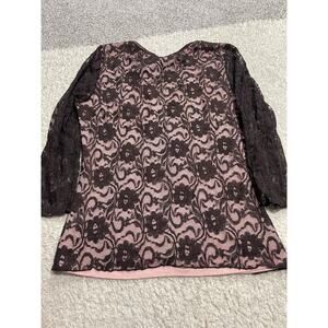 Y2K I.N.C International Concepts Women's Small Split Neck Tunic Top Floral Lace Black Pink