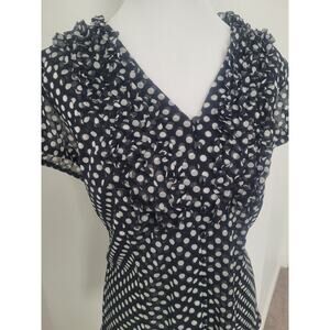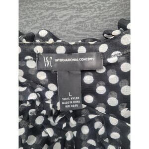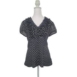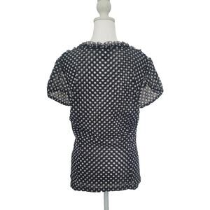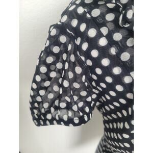 Y2K INC Polka Dot Mesh Ruffle Blouse Size L Black Office Siren Goth Preppy