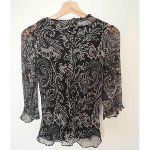 Y2K Ice Silk Paisley Beaded Ruffle Neckline Blouse Size Small