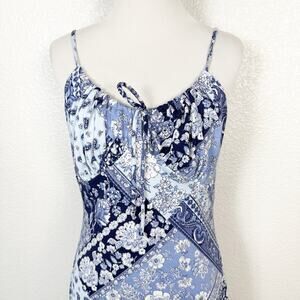 Y2K Inspired Hearts Cottagecore Milkmaid Patchwork Print Slip Dress Blue Large
