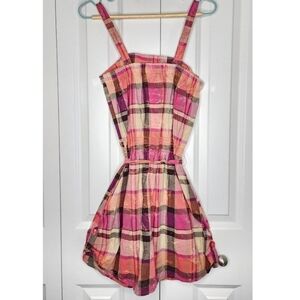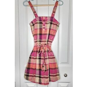 Y2K Inspired Mudd Girls Pink N' Orange Plaid Strappy Dress w/ Button-Up Detail