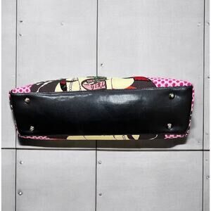 This Y2K Isabella Fiore Daddy’s Girl Sequined Tote Bag is just fabulous and a rare find! Featuring bold graphics with sequined details and black leather straps/trim, this large bag is both super stylish and functional with a removable/adjustable strap for hand, shoulder or crossbody wear. Perfect if you are looking for a bold, fun, bright graphic Y2K look. If you are an Isabella Fiore fan, then you know the quality and craftmanship and how iconic these bags were in the early 2000’s and need this in your collection!