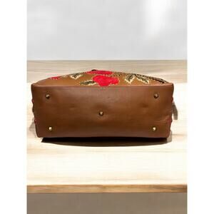 This Y2K Isabella Fiore Rambling Rose Large Toby Tote and Zip Around Wallet is just gorgeous! Featuring rich cognac leather with red whipstitch detailing and an embroidered/jeweled rose pattern, this large tote would make a great everyday bag or work tote. Y2K Isabella Fiore styles give off chic, boho vibes and this rare to find set would be a great edition to any bag collection!