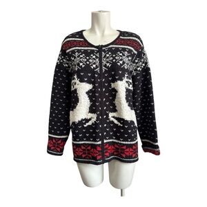 Y2K J. Jill Deer Valley Fair Isle Full Zip Cardigan Sweater Women’s Large