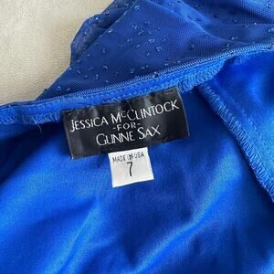 Y2K JESSICA McCLINTOCK Gunne Sax Maxi one shoulder blue ruffle front dress Small