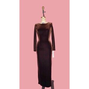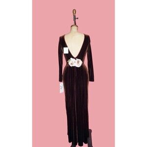 Y2K JESSICA McCLINTOCK NWT. Low Back Rosette Velvet Long Sleeve Maxi Dress. S-M