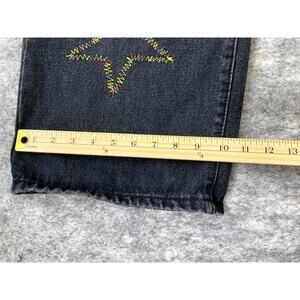 Get ready to rock these Y2K JNCO inspired black pants! These pants feature an extra wide leg and a flared skater style, perfect for that indie and baggy look. While there are no size tags, the measurements are approximate, fitting like a 30/30. These pants are in great condition and ready to make a statement in your wardrobe!
