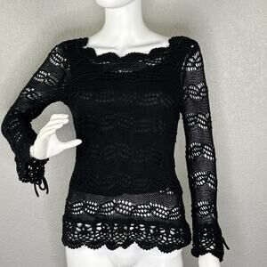 Y2K JOSEPH A. Womens Sweater Open Knit Crochet Bell Slv Black Whimsigoth Size S