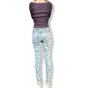 Y2K Jeans Low Rise Tie Dye Skinny Ankle Zip Blue