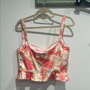 Y2K Jenny from the block pink and Gold chain peplum tank matching scarf new XL
