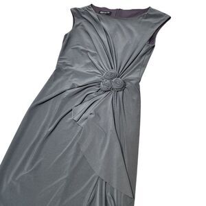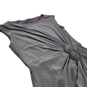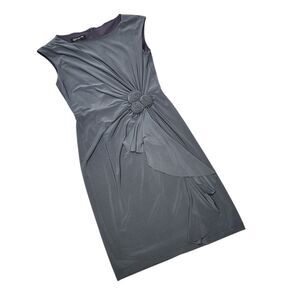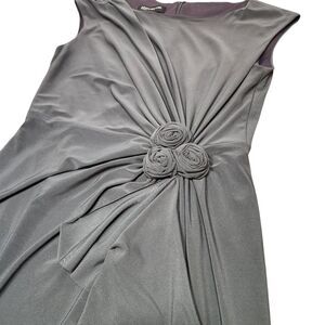 Jones New York Dress Sleeveless Short Gray Faux Wrap Stretch Roses Floral Ruched Pencil Shift