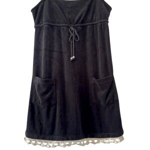 Rare Vintage Y2K 2000’s Juicy Couture Black French Terry Mini Dress Swim Bikini Cover Up Sundress