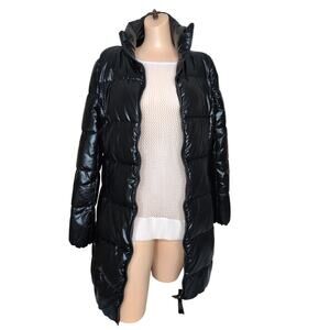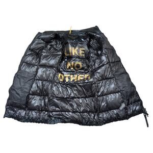 Y2K Juicy Couture Black Label Long Puffer Coat Women Large Metallic Logo Jacket