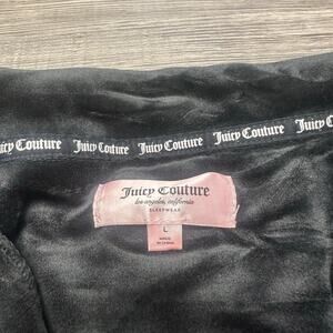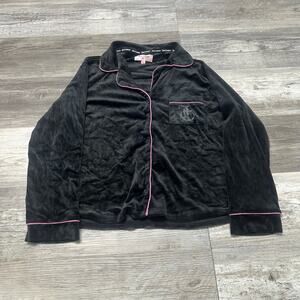 Y2K Juicy Couture Black Pink Womens Large Button Up Velour Pajama Top Loungewear EUC