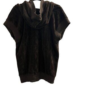 Y2K Juicy Couture Brown Velour Pattern Short Sleeve Hooded Sweatshirt Sz Medium