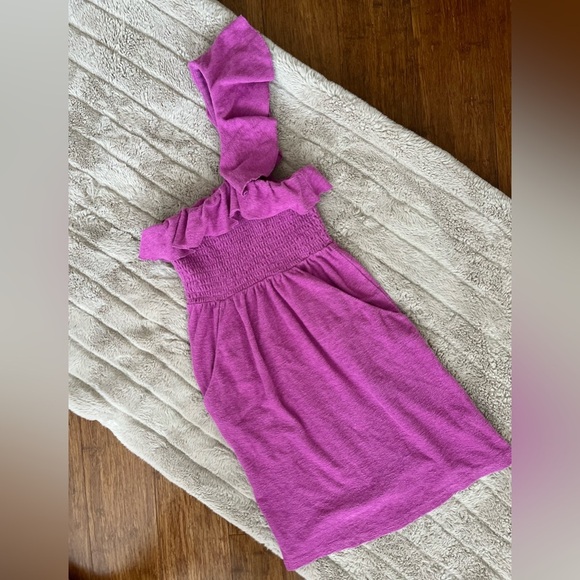 Y2K Juicy Couture Dress TerryCloth Violet Ruffle Trim 1 Shoulder Smocked Bust XS