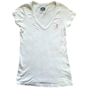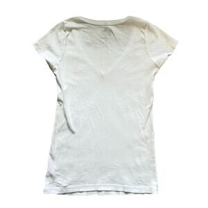 Juicy Couture V Neck Tee T-shirt Womens Size Small Cap Embroidered Logo White. Would make a great baby tee shape if sized down!
