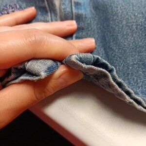 Up for sale are a cute pair of baby girl's denim jeans. From the style, I think these are from the Y2K era, but they may be from the late 90s. They are made by Just Be. These 12-month-sized jeans feature an elastic waist and embroidered details including a heart and two flowers on the lower legs. They are made of 100% cotton. I think they're in good condition except for two little worn spots on the leg openings which is pictured. Aside from that, these adorable jeans are ready for your little one to enjoy. Thanks for looking!