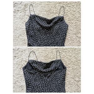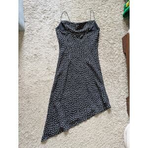 Y2K Kathie Lee Slip Dress 8 Black Polka Dot Asymmetric Hem Whimsigoth Cowl Neck 90s Fairy Grunge