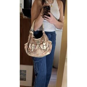 Y2K Kathy Van Zeeland Vintage Soft Fabric Leather Shoulder Bag Purse Charms Boho